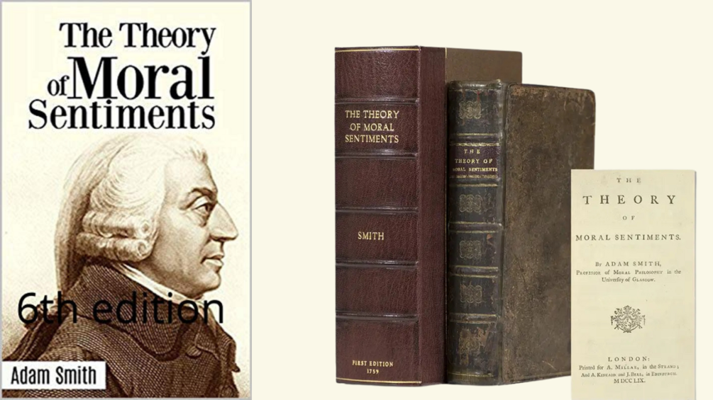 The Theory of Moral Sentiments written by Adam Smith and published in 1759. Provides an ethical, philosophical, and methodological foundation for Smith's later work such as The Wealth of Nations.